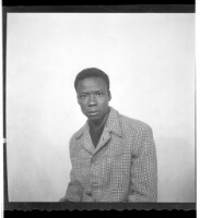260. EAP449/2/32/260 Reference (shelfmark): EAP449/2/32/260 Title: A man in a boubou sitting facing forward in the studio. Collection Area: Endangered Archives Programme Languages: Not applicable Date Range: 2nd half od the 20th century Extent: 1 TIFF image