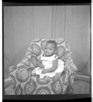 367. EAP449/2/32/367 Reference (shelfmark): EAP449/2/32/367 Title: A little girl in a dress sitting facing forward in a chair in the studio. Collection Area: Endangered Archives Programme Languages: Not applicable Date Range: 2nd half od the 20th century Extent: 1 TIFF image