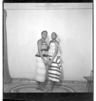 370. EAP449/2/32/370 Reference (shelfmark): EAP449/2/32/370 Title: Two girls in dresses, panges, and headscarves holding hands standing in profile in the studio. Collection Area: Endangered Archives Programme Languages: Not applicable Date Range: 2nd half od the 20th century Extent: 1 TIFF image
