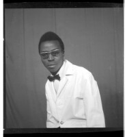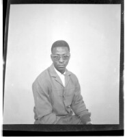 375. EAP449/2/32/375 Reference (shelfmark): EAP449/2/32/375 Title: A man in a dress shirt and sweater and glasses sitting facing forward in the studio. Collection Area: Endangered Archives Programme Languages: Not applicable Date Range: 2nd half od the 20th century Extent: 1 TIFF image