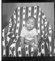 380. EAP449/2/32/380 Reference (shelfmark): EAP449/2/32/380 Title: A little boy in a t-shirt sitting facing forward in a chair in the studio. Collection Area: Endangered Archives Programme Languages: Not applicable Date Range: 2nd half od the 20th century Extent: 1 TIFF image