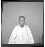 422. EAP449/2/32/422 Reference (shelfmark): EAP449/2/32/422 Title: A man in a boubou sitting facing forward in the studio. Collection Area: Endangered Archives Programme Languages: Not applicable Date Range: 2nd half od the 20th century Extent: 1 TIFF image
