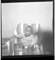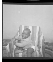 423. EAP449/2/32/423 Reference (shelfmark): EAP449/2/32/423 Title: A little boy in a t-shirt and hat sitting in profile in a chair in the studio. Collection Area: Endangered Archives Programme Languages: Not applicable Date Range: 2nd half od the 20th century Extent: 1 TIFF image