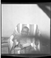 425. EAP449/2/32/425 Reference (shelfmark): EAP449/2/32/425 Title: A little boy in a sweater sitting in profile in a chair in the studio. Collection Area: Endangered Archives Programme Languages: Not applicable Date Range: 2nd half od the 20th century Extent: 1 TIFF image