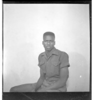 430. EAP449/2/32/430 Reference (shelfmark): EAP449/2/32/430 Title: A man in a dress shirt and shorts sitting in profile in the studio. Collection Area: Endangered Archives Programme Languages: Not applicable Date Range: 2nd half od the 20th century Extent: 1 TIFF image