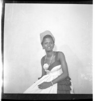 431. EAP449/2/32/431 Reference (shelfmark): EAP449/2/32/431 Title: A girl in a dress, headscarf, and necklace sitting facing forward in the studio. Collection Area: Endangered Archives Programme Languages: Not applicable Date Range: 2nd half od the 20th century Extent: 1 TIFF image