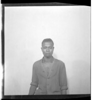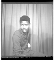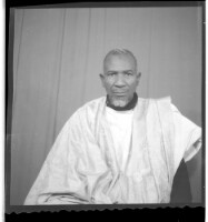 434. EAP449/2/32/434 Reference (shelfmark): EAP449/2/32/434 Title: A man in a boubou sitting facing forward in the studio. Collection Area: Endangered Archives Programme Languages: Not applicable Date Range: 2nd half od the 20th century Extent: 1 TIFF image