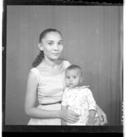 436. EAP449/2/32/436 Reference (shelfmark): EAP449/2/32/436 Title: A woman in a dress and necklace holding a child on her lap sitting in profile in the studio. Collection Area: Endangered Archives Programme Languages: Not applicable Date Range: 2nd half od the 20th century Extent: 1 TIFF image