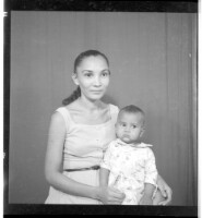 437. EAP449/2/32/437 Reference (shelfmark): EAP449/2/32/437 Title: A woman in a dress and necklace holding a child on her lap in profile in the studio. Collection Area: Endangered Archives Programme Languages: Not applicable Date Range: 2nd half od the 20th century Extent: 1 TIFF image