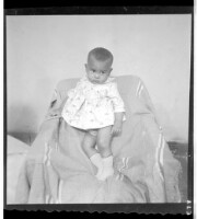 438. EAP449/2/32/438 Reference (shelfmark): EAP449/2/32/438 Title: A little girl in a dress standing facing forward in a chair in the studio. Collection Area: Endangered Archives Programme Languages: Not applicable Date Range: 2nd half od the 20th century Extent: 1 TIFF image