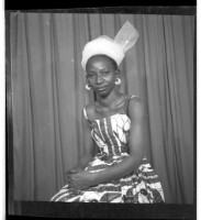 481. EAP449/2/32/481 Reference (shelfmark): EAP449/2/32/481 Title: A woman in a dress and headscarf sitting facing forward in the studio. Collection Area: Endangered Archives Programme Languages: Not applicable Date Range: 2nd half od the 20th century Extent: 1 TIFF image