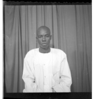 492. EAP449/2/32/492 Reference (shelfmark): EAP449/2/32/492 Title: A man in a boubou sitting facing forward in the studio. Collection Area: Endangered Archives Programme Languages: Not applicable Date Range: 2nd half od the 20th century Extent: 1 TIFF image