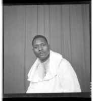 495. EAP449/2/32/495 Reference (shelfmark): EAP449/2/32/495 Title: A man in a boubou sitting facing forward in the studio. Collection Area: Endangered Archives Programme Languages: Not applicable Date Range: 2nd half od the 20th century Extent: 1 TIFF image