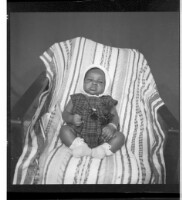 497. EAP449/2/32/497 Reference (shelfmark): EAP449/2/32/497 Title: A little girl in a dress and hat sitting in profile in a chair in the studio. Collection Area: Endangered Archives Programme Languages: Not applicable Date Range: 2nd half od the 20th century Extent: 1 TIFF image