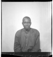 506. EAP449/2/32/506 Reference (shelfmark): EAP449/2/32/506 Title: A man in a boubou sitting facing forward in the studio. Collection Area: Endangered Archives Programme Languages: Not applicable Date Range: 2nd half od the 20th century Extent: 1 TIFF image