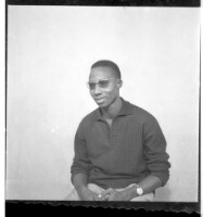 509. EAP449/2/32/509 Reference (shelfmark): EAP449/2/32/509 Title: A man in a dress shirt and glasses sitting in profile in the studio. Collection Area: Endangered Archives Programme Languages: Not applicable Date Range: 2nd half od the 20th century Extent: 1 TIFF image