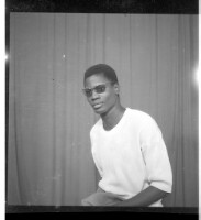 503. EAP449/2/32/503 Reference (shelfmark): EAP449/2/32/503 Title: A man in a boubou sitting facing forward in the studio. Collection Area: Endangered Archives Programme Languages: Not applicable Date Range: 2nd half od the 20th century Extent: 1 TIFF image