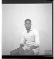 521. EAP449/2/32/521 Reference (shelfmark): EAP449/2/32/521 Title: A man in a dress shirt and shorts sitting facing forward in the studio. Collection Area: Endangered Archives Programme Languages: Not applicable Date Range: 2nd half od the 20th century Extent: 1 TIFF image