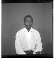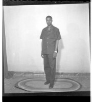 525. EAP449/2/32/525 Reference (shelfmark): EAP449/2/32/525 Title: A man in a dress shirt and pants standing facing forward in the studio. Collection Area: Endangered Archives Programme Languages: Not applicable Date Range: 2nd half od the 20th century Extent: 1 TIFF image