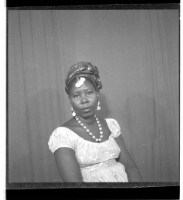 526. EAP449/2/32/526 Reference (shelfmark): EAP449/2/32/526 Title: A woman in a dress, headscarf, and necklace sitting facing forward in the studio. Collection Area: Endangered Archives Programme Languages: Not applicable Date Range: 2nd half od the 20th century Extent: 1 TIFF image