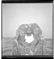 613. EAP449/2/32/613 Reference (shelfmark): EAP449/2/32/613 Title: A little boy in a tank top sitting facing forward in a chair in the studio. Collection Area: Endangered Archives Programme Languages: Not applicable Date Range: 2nd half od the 20th century Extent: 1 TIFF image