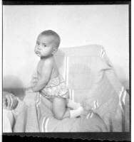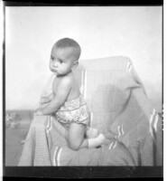 82. EAP449/2/32/82 Reference (shelfmark): EAP449/2/32/82 Title: A little boy in shorts crouching in profile on a chair in the studio. Collection Area: Endangered Archives Programme Languages: Not applicable Date Range: 2nd half od the 20th century Extent: 1 TIFF image