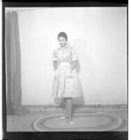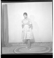 86. EAP449/2/32/86 Reference (shelfmark): EAP449/2/32/86 Title: A girl in a dress shirt and skirt standing in profile in the studio. Collection Area: Endangered Archives Programme Languages: Not applicable Date Range: 2nd half od the 20th century Extent: 1 TIFF image