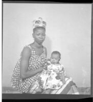 88. EAP449/2/32/88 Reference (shelfmark): EAP449/2/32/88 Title: A woman in a dress, pagne, and headscarf sitting in profile holding a little girl on her lap in the studio. Collection Area: Endangered Archives Programme Languages: Not applicable Date Range: 2nd half od the 20th century Extent: 1 TIFF image
