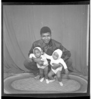 90. EAP449/2/32/90 Reference (shelfmark): EAP449/2/32/90 Title: A man in a dress shirt, jacket, and pants sitting holding two children in sweaters and hats in the studio. Collection Area: Endangered Archives Programme Languages: Not applicable Date Range: 2nd half od the 20th century Extent: 1 TIFF image