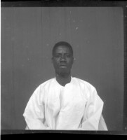 95. EAP449/2/33/95 Reference (shelfmark): EAP449/2/33/95 Title: A man wearing a white boubou sitting face-forward in the studio. Collection Area: Endangered Archives Programme Languages: Not applicable Date Range: 2nd half od the 20th century Extent: 1 TIFF image