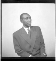 96. EAP449/2/33/96 Reference (shelfmark): EAP449/2/33/96 Title: A man wearing a black suit and tie sitting in profile view in the studio. Collection Area: Endangered Archives Programme Languages: Not applicable Date Range: 2nd half od the 20th century Extent: 1 TIFF image