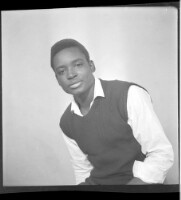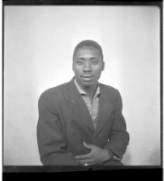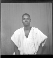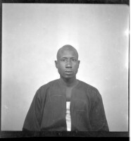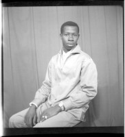 Full shot of a man sitting in a chair wearing a short sleeved black shirt and black pants and shoes with his arms and legs crossed facing forward in the studio.