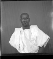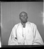 1083. EAP449/2/33/1083 Reference (shelfmark): EAP449/2/33/1083 Title: A young man sitting wearing a large white boubou facing forward in the studio. Collection Area: Endangered Archives Programme Languages: Not applicable Date Range: 2nd half od the 20th century Extent: 1 TIFF image