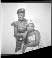 101. EAP449/2/33/101 Reference (shelfmark): EAP449/2/33/101 Title: Two women wearing dresses and headscarves, one standing face-forward and the other sitting face-forward in the studio. Collection Area: Endangered Archives Programme Languages: Not applicable Date Range: 2nd half od the 20th century Extent: 1 TIFF image