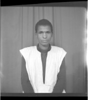 104. EAP449/2/33/104 Reference (shelfmark): EAP449/2/33/104 Title: A man wearing a short-sleeved white boubou and long-sleeved t-shirt underneath, sitting face-forward in the studio. Collection Area: Endangered Archives Programme Languages: Not applicable Date Range: 2nd half od the 20th century Extent: 1 TIFF image
