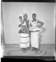 105. EAP449/2/33/105 Reference (shelfmark): EAP449/2/33/105 Title: Two women wearing pagne dresses standing face-forward with a baby in the studio. Collection Area: Endangered Archives Programme Languages: Not applicable Date Range: 2nd half od the 20th century Extent: 1 TIFF image