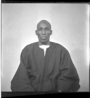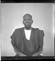 106. EAP449/2/33/106 Reference (shelfmark): EAP449/2/33/106 Title: A man wearing a black boubou sitting face-forward in the studio. Collection Area: Endangered Archives Programme Languages: Not applicable Date Range: 2nd half od the 20th century Extent: 1 TIFF image