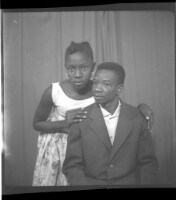 108. EAP449/2/33/108 Reference (shelfmark): EAP449/2/33/108 Title: A couple, a man wearing a black jacket sitting, and a girl wearing a dress standing facing forward behind him in the studio. Collection Area: Endangered Archives Programme Languages: Not applicable Date Range: 2nd half od the 20th century Extent: 1 TIFF image