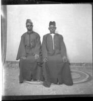 110. EAP449/2/33/110 Reference (shelfmark): EAP449/2/33/110 Title: Two men wearing black boubous and hats sitting face-forward in the studio. Collection Area: Endangered Archives Programme Languages: Not applicable Date Range: 2nd half od the 20th century Extent: 1 TIFF image