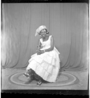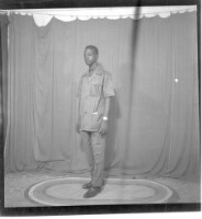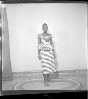 139. EAP449/2/33/139 Reference (shelfmark): EAP449/2/33/139 Title: A girl wearing a dress and pagne standing face-forward in the studio. Collection Area: Endangered Archives Programme Languages: Not applicable Date Range: 2nd half od the 20th century Extent: 1 TIFF image