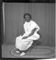 132. EAP449/2/33/132 Reference (shelfmark): EAP449/2/33/132 Title: A man wearing a white boubou and hat sitting in profile in the studio. Collection Area: Endangered Archives Programme Languages: Not applicable Date Range: 2nd half od the 20th century Extent: 1 TIFF image