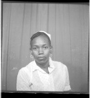 143. EAP449/2/33/143 Reference (shelfmark): EAP449/2/33/143 Title: A girl wearing a white dress and headscarf sitting face-forward in the studio. Collection Area: Endangered Archives Programme Languages: Not applicable Date Range: 2nd half od the 20th century Extent: 1 TIFF image