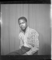 141. EAP449/2/33/141 Reference (shelfmark): EAP449/2/33/141 Title: A man wearing a short-sleeved boubou sitting face-forward in the studio. Collection Area: Endangered Archives Programme Languages: Not applicable Date Range: 2nd half od the 20th century Extent: 1 TIFF image