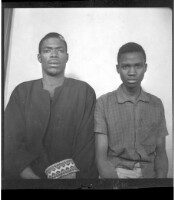 149. EAP449/2/33/149 Reference (shelfmark): EAP449/2/33/149 Title: Two men, one wearing a boubou and the other a dress shirt, sitting face forward in the studio. Collection Area: Endangered Archives Programme Languages: Not applicable Date Range: 2nd half od the 20th century Extent: 1 TIFF image