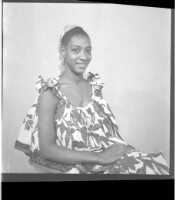 150. EAP449/2/33/150 Reference (shelfmark): EAP449/2/33/150 Title: A woman wearing a dress and headscarf sitting in profile in the studio. Collection Area: Endangered Archives Programme Languages: Not applicable Date Range: 2nd half od the 20th century Extent: 1 TIFF image