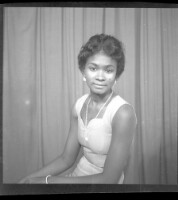 201. EAP449/2/33/201 Reference (shelfmark): EAP449/2/33/201 Title: A young girl wearing a dress, necklace, up-do, and earrings sitting in profile in the studio. Copy of image 24189. Collection Area: Endangered Archives Programme Languages: Not applicable Date Range: 2nd half od the 20th century Extent: 1 TIFF image