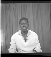 206. EAP449/2/33/206 Reference (shelfmark): EAP449/2/33/206 Title: A young man wearing a white dress shirt black track jacket facing forward in the studio. Collection Area: Endangered Archives Programme Languages: Not applicable Date Range: 2nd half od the 20th century Extent: 1 TIFF image