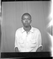 208. EAP449/2/33/208 Reference (shelfmark): EAP449/2/33/208 Title: A young man wearing a white long-sleeved dress shirt with pockets facing forward in the studio Collection Area: Endangered Archives Programme Languages: Not applicable Date Range: 2nd half od the 20th century Extent: 1 TIFF image