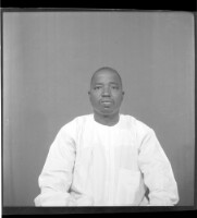 209. EAP449/2/33/209 Reference (shelfmark): EAP449/2/33/209 Title: A man wearing a white boubou sitting facing forward in the studio. Collection Area: Endangered Archives Programme Languages: Not applicable Date Range: 2nd half od the 20th century Extent: 1 TIFF image