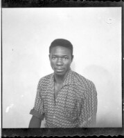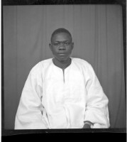 225. EAP449/2/33/225 Reference (shelfmark): EAP449/2/33/225 Title: A man wearing a white boubou and a watch sitting face forward in the studio. Collection Area: Endangered Archives Programme Languages: Not applicable Date Range: 2nd half od the 20th century Extent: 1 TIFF image